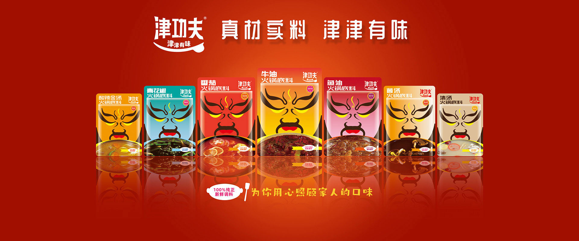 廣東津功夫食品有限公司,位于廣東省肇慶市國家高新區,占地面積約2.5萬平方米,是以專業研發(fā)、生產、銷售復合調味品及火鍋底料為主的現代化食品企業。      "津功夫"為公司注冊商標。公司擁有四大調味品專用生產車間及國內領先的生產工藝;裝備有反應釜、電磁炒鍋、天然氣炒鍋、蒸煮生產線、各型號全自動包裝機、冷封生產線等先進生產設備,年生產能力達2萬噸;配備有微檢、重金屬、金檢、水分、折光等檢測設備。        公司依照國家食品安全法,采用GMP及ISO管理標準,已先后通過ISO-22000質量管理體系認證、HACCP認證。        公司研發(fā)團隊由公司創(chuàng)始人親自帶隊,立足當下,不斷創(chuàng)新,將在調味品行業20余年的潛心研究成果變?yōu)楝F實,精品輩出,為客戶創(chuàng)造更多、更好的價值。公司以川味調味品為根,以客戶需求為本,開發(fā)了復合調味品及火鍋底料兩大板塊的系列產品。復合調味品板塊涵蓋:
